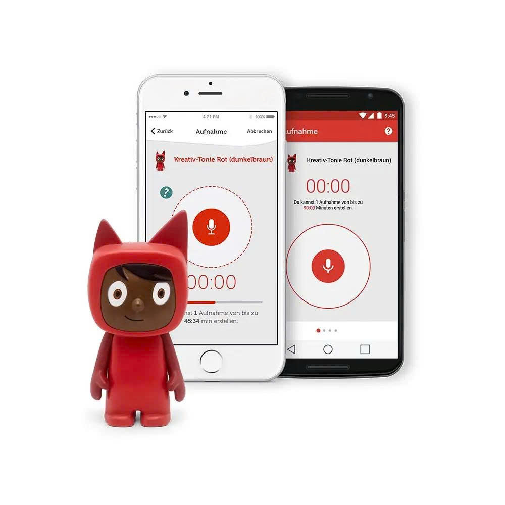 „Der Kreativ-Tonie in Rot und Dunkelbraun ist der perfekte Begleiter für kleine Entdecker. Mit ihm können Kinder ihre eigenen Geschichten, Lieder oder Nachrichten aufnehmen und so ihrer Fantasie freien Lauf lassen. Dieses einzigartige Hörspielerlebnis fördert Kreativität, Spaß und Lernen – alles in einem handlichen, liebevoll gestalteten Tonie. Mach dein Kinderzimmer zum Ort voller Abenteuer!“